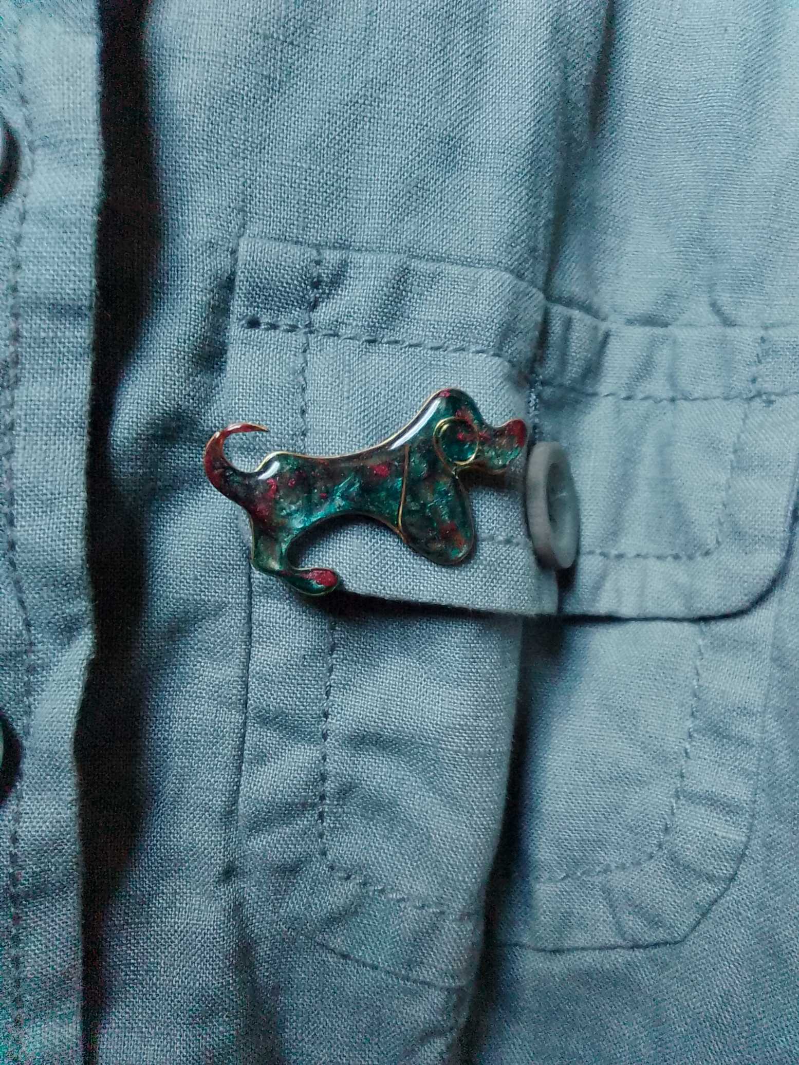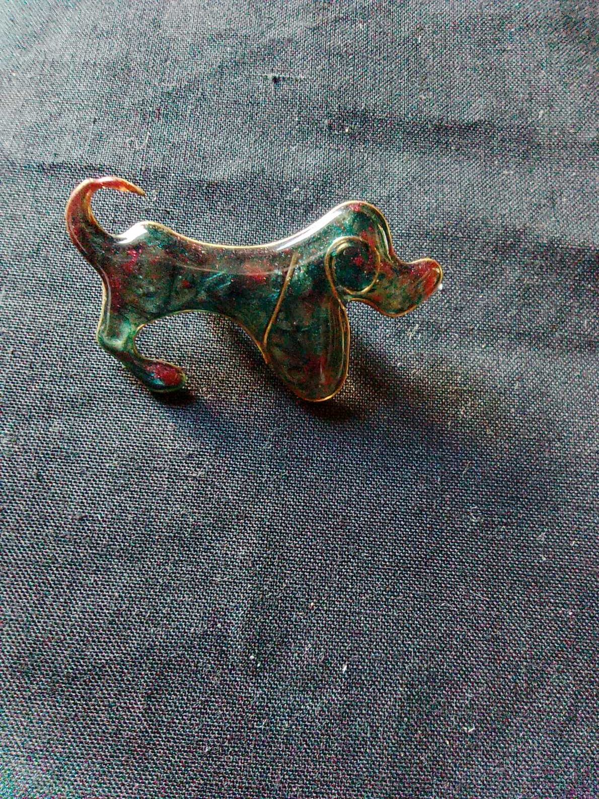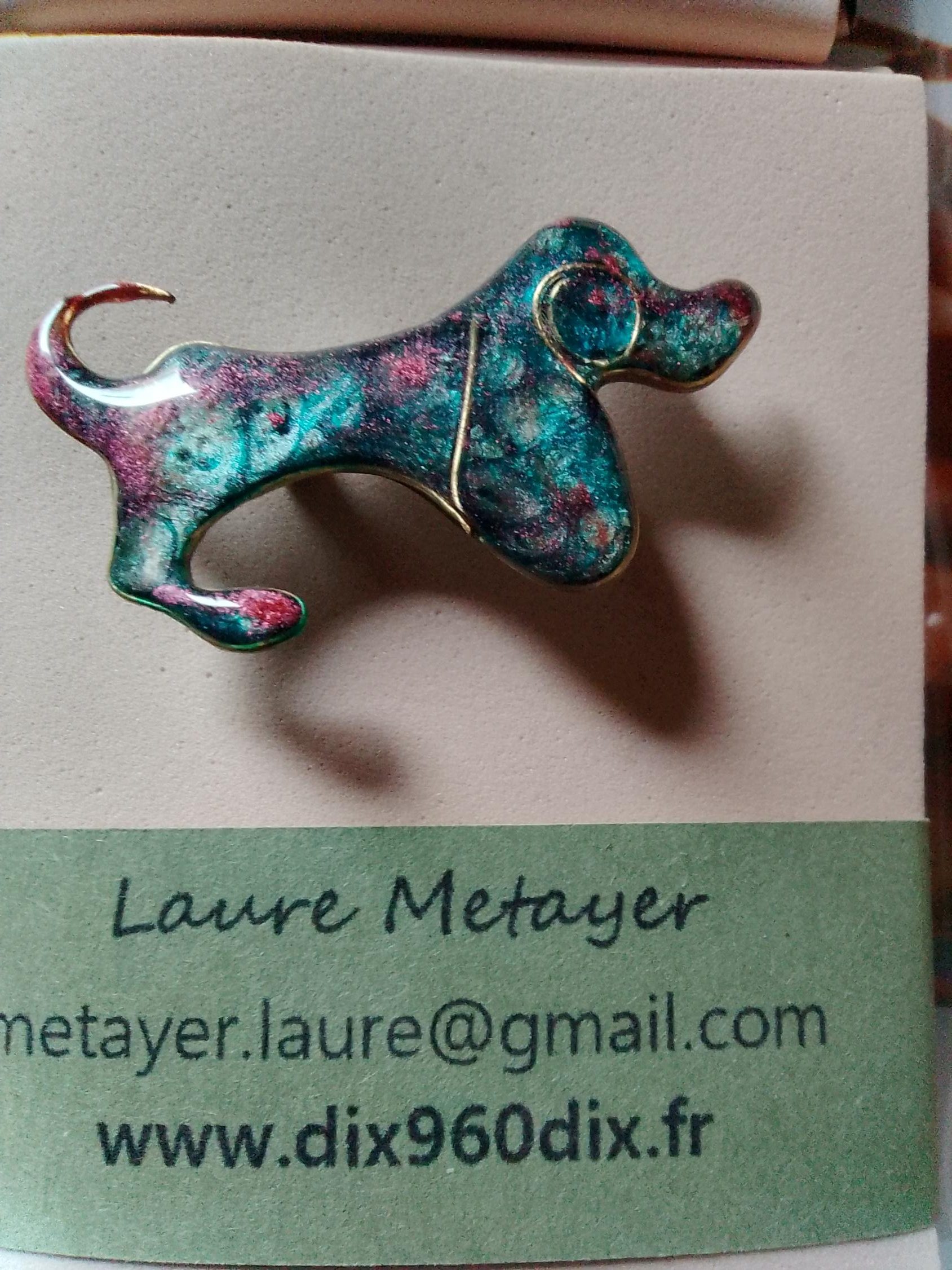 Cette broche résine basset hound est une création unique, faite main, en France.