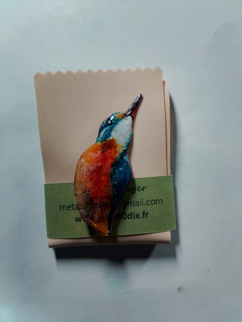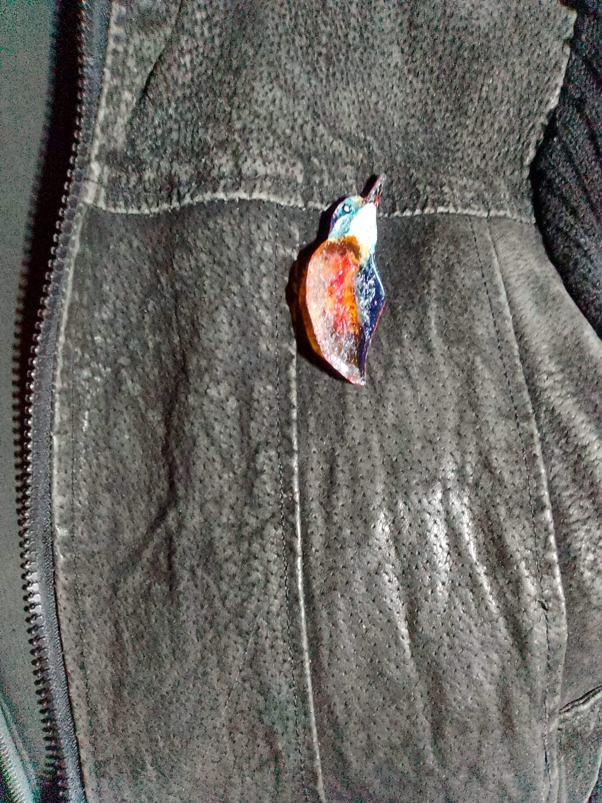Cette broche résine Martin pêcheur est une création unique, faite en France.